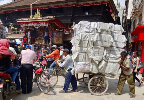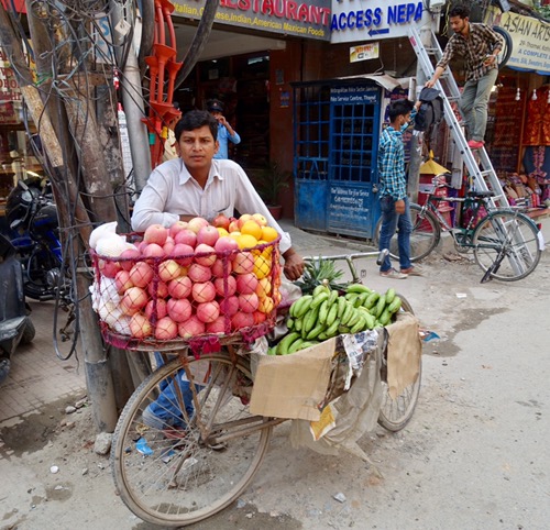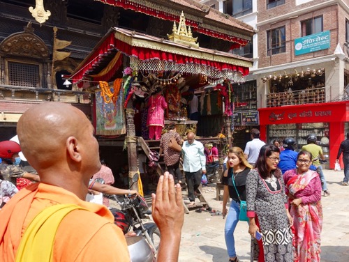 Am letzten Tag vor unserem Trek, morgen geht’s nach Jiri, liessen wir das chaotische Treiben in den Gassen auf uns wirken. Was soll’s sein? Zahnprothese, Räucherstäbchen, Gewürze oder doch nur frische Früchte… Hier ist alles zu haben, aber Obacht, dass keine Rikscha oder Motorrad übersehen wird. Deshalb die ganzen Schutzheiligen mit Opfergaben an jeder Strassenecke!