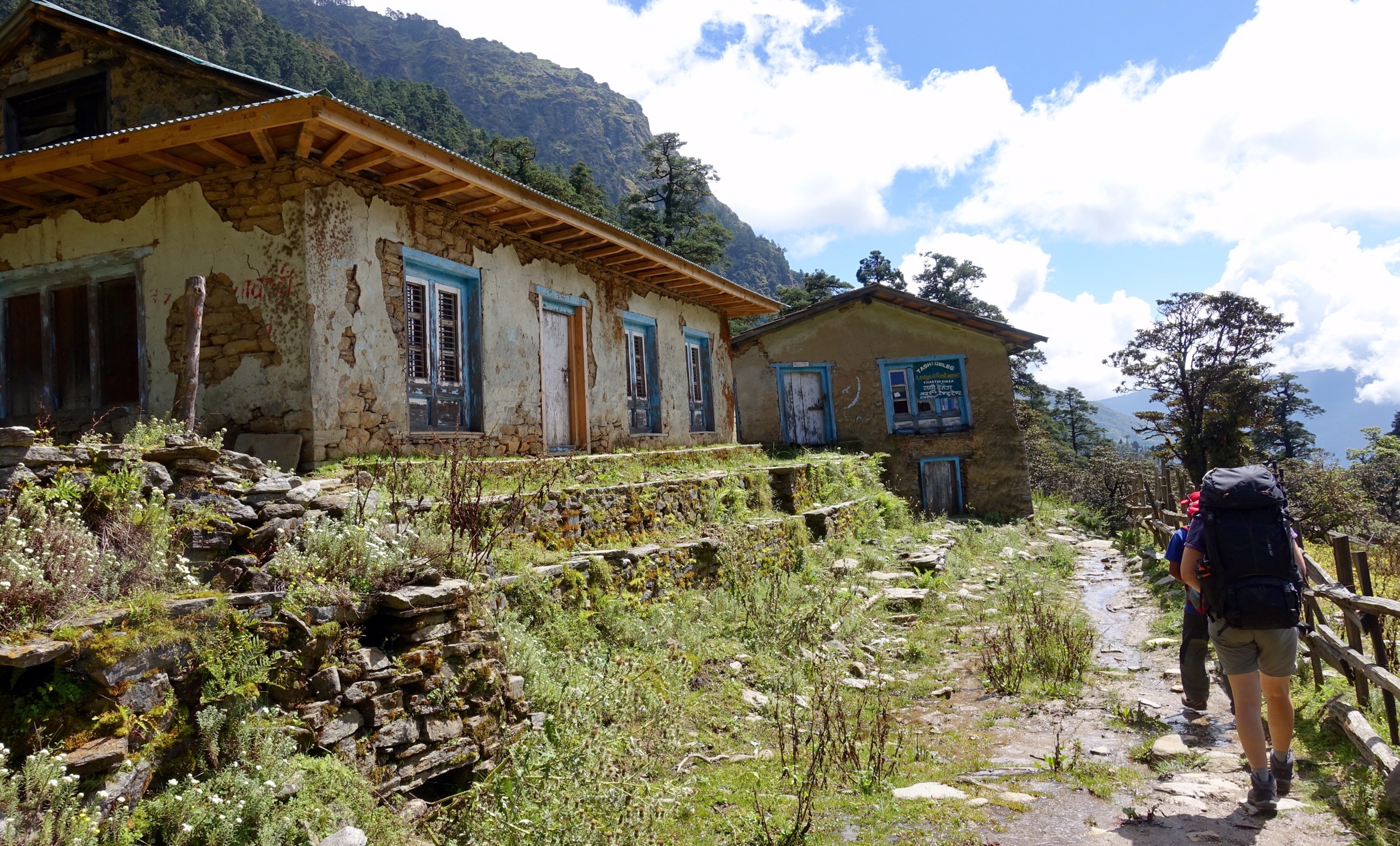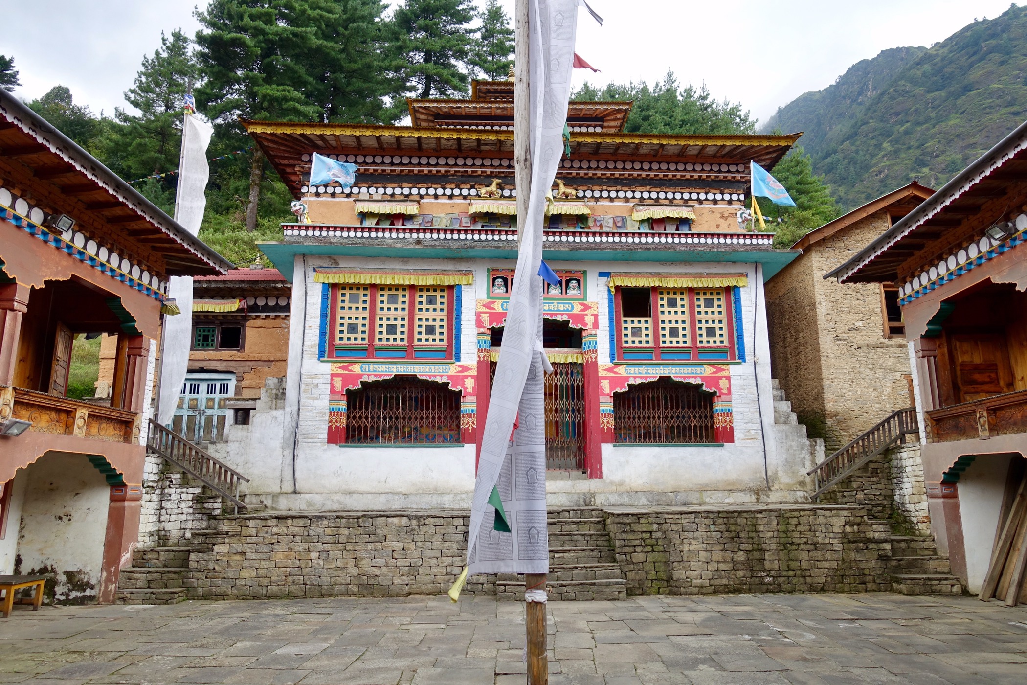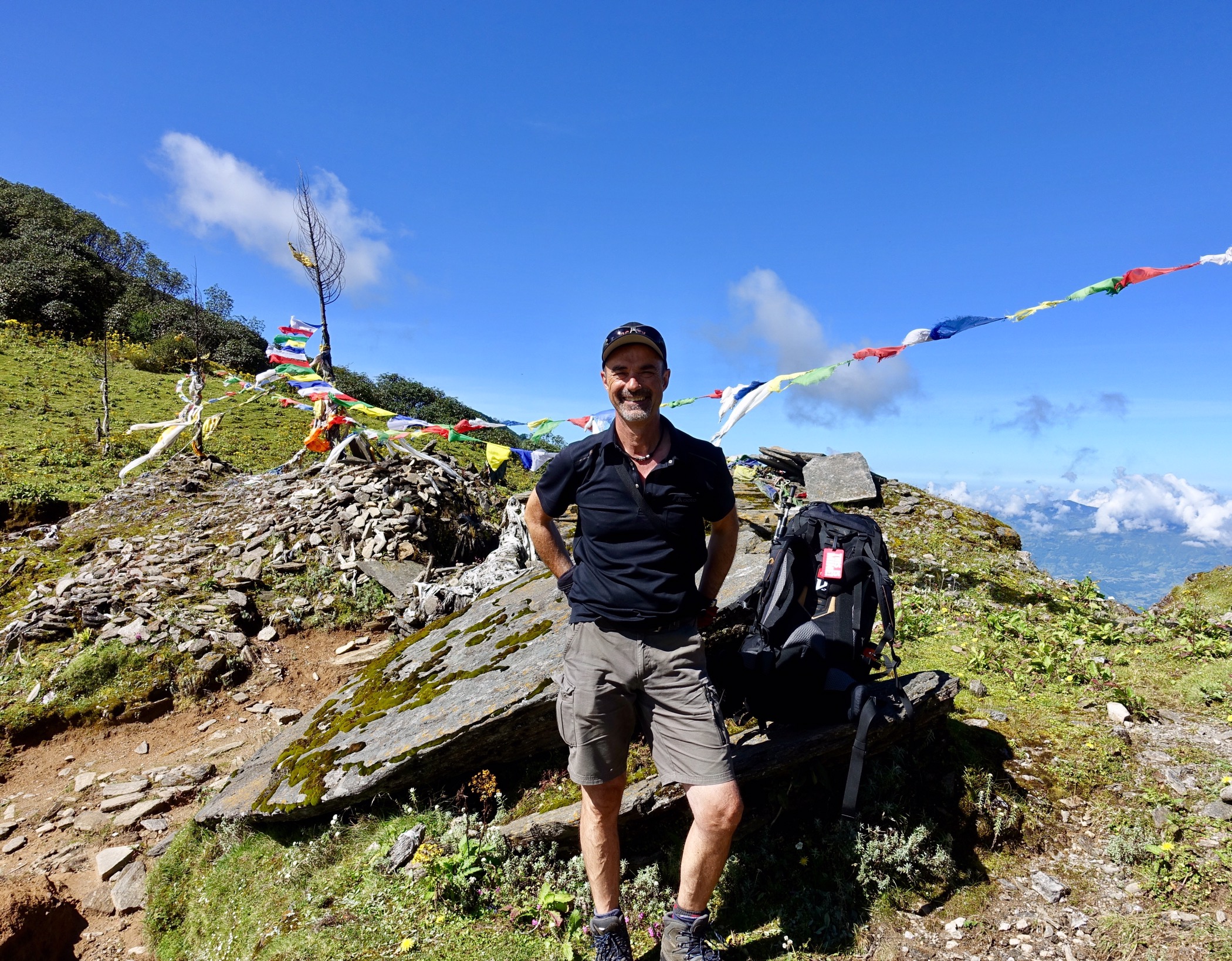 Nach einer Gewitternacht in Goyam ging’s auf unserer 4. Etappe über den Lamjura Pass mit 3’530m nach Junbesi. Der Weg führte durch eine sehr verlassene Gegend, mit Märliwäldern und toller Aussicht, begleitet vom Geräusch der Propellermaschinen nach Lukla. Trotzdem haben wir noch ein junges, tschechisches Paar getroffen, somit 4 Trekker in 4 Tagen!