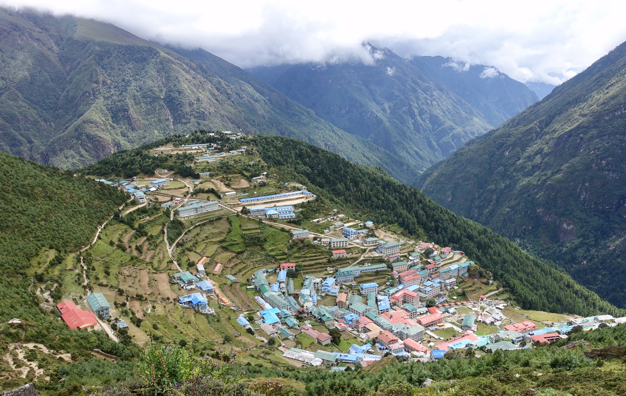 Den Akklimatisierungstag in Namche nutzten wir für eine „kleine“ Runde zum Everest View Hotel (3900m), der Name ist Programm: erstmaliger Blick auf Everest, Lhotse und Ama Dablam; die sind aber noch 3 Tagesmärsche entfernt! Zurück über Khumjung und Khunde in herrlicher Landschaft waren wir doch 5h unterwegs…