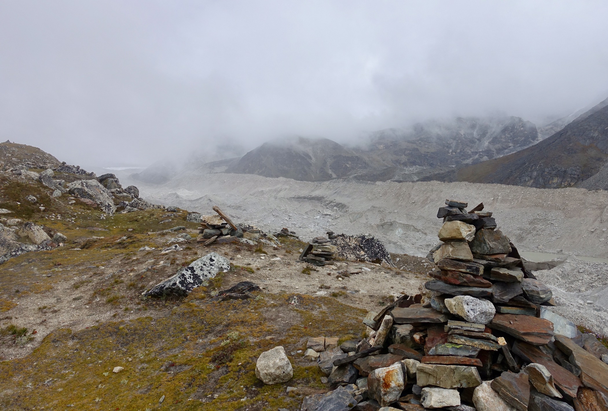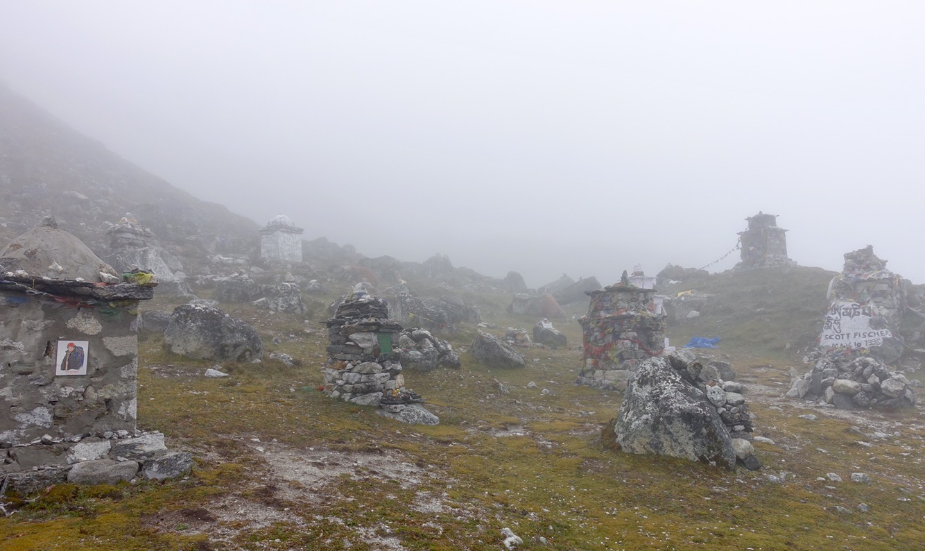In mystischer Stimmung, aufgrund des Nebels, ging’s langsam und behäbig von Dingboche 500hm hoch nach Lobuche (4900m). Unterwegs trafen wir auf diverse Gedenksteine von verunglückten Gipfelstürmern. Am Tagesziel angekommen waren wir positiv überrascht über die sehr komfortable Unterkunft auf DIESER Höhe. Die sympathischen Gastgeber sprechen sogar deutsch mit Wiener Akzent!