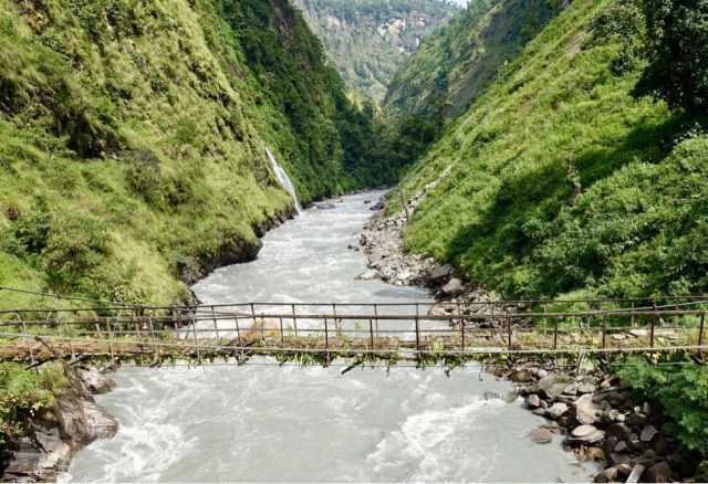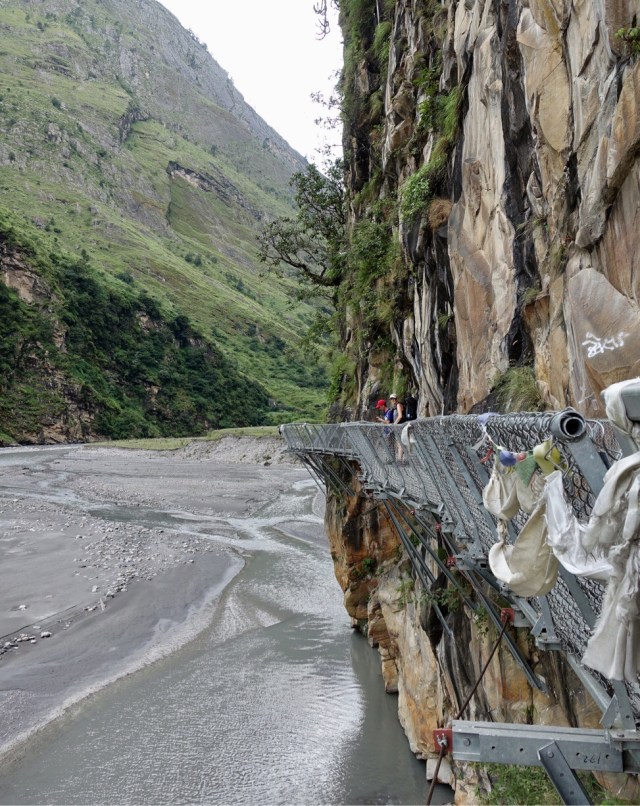 Unsere lange 2. Etappe des Manaslu Circuit führte uns von Machhakhola (800m) nach Jagat (1300m). Weiterhin immer dem Fluss entlang, an einfachen Dörfern vorbei und vielen Maultierkarawanen folgend, erreichten wir den Checkpoint. Ab hier darf nur noch mit einem lizensierten Guide gegangen werden.
