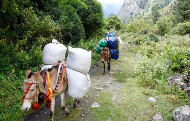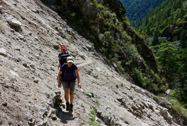 Die heutige 4. Etappe des Manaslu Circuit führte von Deng (schrecklicher Ort!) nach Namrung (2600m, schöner Ort!). Die 700hm wurden hauptsächlich zum Schluss unserer 6 stündigen Tagestour erklommen. Apropos: die Stundenangaben beziehen sich auf die reine Laufzeit ohne Pausen.