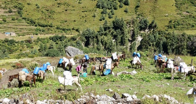 Auch ist uns ein spanischer Expeditiontrupp entgegengekommen, die waren auf dem Manaslu North (7200m) und ihre Infrastruktur benötigte einige Maultierkarawanen.
