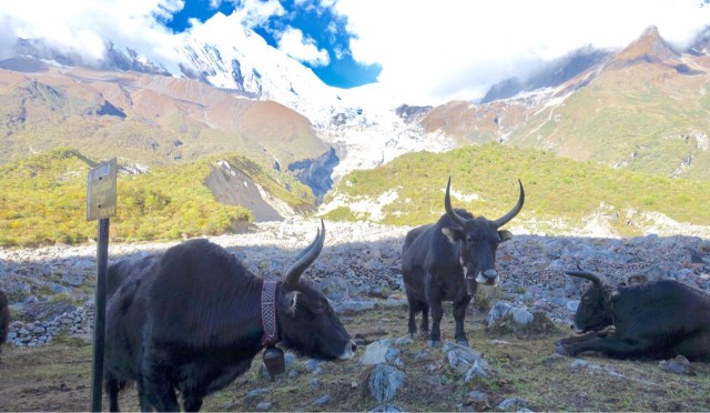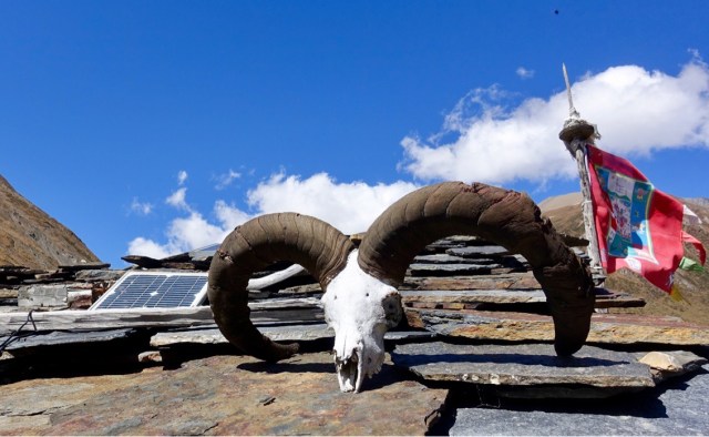 Dank dem vorgängig erfolgreich absolvierten Everest Trail mit 2 Akklimatisierungstagen können wir nun darauf verzichten. Ein „gemütlicher“ Spaziergang in hochalpiner Kulisse führte uns direkt nach Samdo (3900m). Wir sind überrascht von der relativ hohen Bevölkerung hier oben, die in engen Dorfkernen mit ihren Nutztieren zusammenlebt. Auch ist das Tibet von hier aus über einen schmalen Pfad in 3 Marschstunden erreichbar.