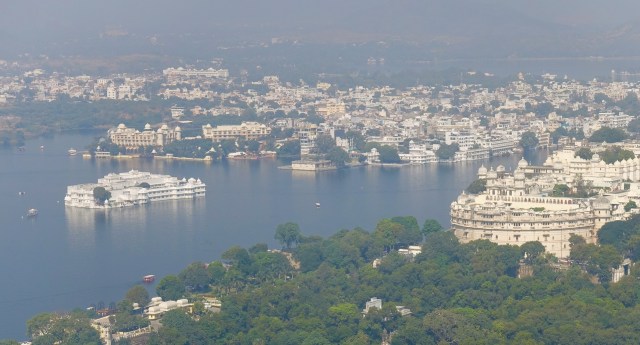 Gestern Abend noch schnell über unsere freundliche Réceptionistin, apropos erste weibliche (!) seit wir in Indien sind, einen TukTuk Fahrer bestellt, der mit uns ein Crashsightseeing durch die Stadt machen soll. Um 9:30h heut morgen ging’s los: Bootsfahrt auf dem Pichola Lake (James Bond Octopussy lässt grüssen), dann mit Luftseilbahn hoch zur famosen Rundumsicht, Besuch einer privaten und exklusiven Autosammlung, umtriebiger Gewürz- und Gemüsemarkt erleben und zum Schluss der gepflegte Stadtgarten…