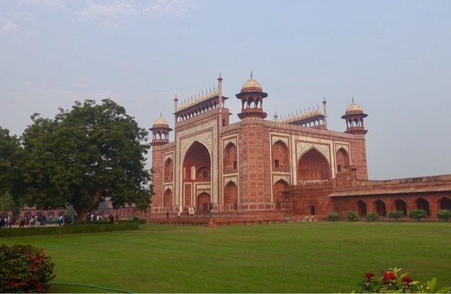 Pünktlich um 6:30h zum Start des umfangreichen Frühstücksbüffets waren wir anwesend. Danach ging’s 10min Fussmarsch zum Osttor, Ticket beziehen, im Preis von INR 1000.- ist eine Flasche Wasser und Schuhpariser inklusive. Kurzer, aber genauer Sicherheitscheck und schwups waren wir um 7:30h drin, bevor die ganzen Massen kamen. Es hat sich gelohnt, sehr beeindruckend!