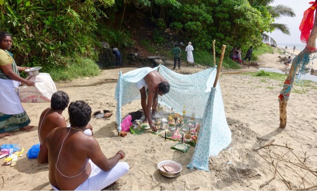 Unseren letzten Tag am Meer verbrachten wir wieder weitgehend mit Nichtstun. Wir brauchten noch letztmals indische Rupien, diese hier zu bekommen gestaltete sich schwieriger als gedacht. Auf der Suche nach einem Geldautomaten liefen wir anfänglich im Touristenort umher, ohne Erfolg. Der nächste Automat befindet sich 3km entfernt. Somit nahmen wir ein TukTuk, da längere Strecken auf indischer Hauptstrasse zu laufen nicht besonders spassig sind. Anschliessend noch etwas das Treiben am Strand und die hinduistischen Rituale beobachtet. Nun gemütliches ausklingen bei einem „Kingfisher Super Strong“ und dem Meer lauschen.