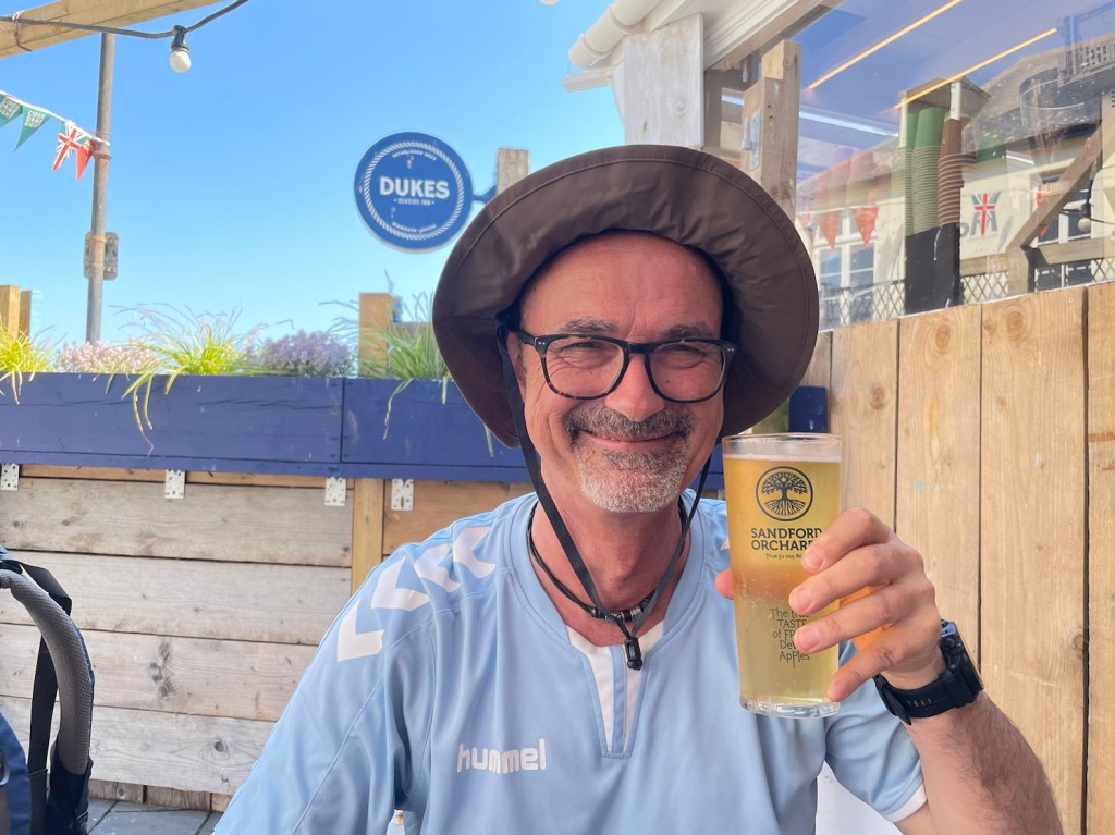 Start um 09.00 Uhr in Exmouth entlang der schönen Sandbeach. Dann kleiner Aufsteig zum offiziellen Start der Jurassic Coast. Nach rund zwei Stunden an der knallenden Sonne, ohne Schatten & obligaten Küstenwind erreichen wir den schönen, etwas verschlafenen Ort Budleigh Salteron. Dort entsteht gerade ein schönes Naturschutzfeuchtgebiet. Dieses muss dann auch umwandert werden. Weiter geht’s nach Ladram Bay. Dort hat man eine wunderschöne Aussicht auf rote Felsen in der Bucht und ein Trailerpark im Rücken. Nun noch das letzte Stück ins malerische Dorf Sidmouth.