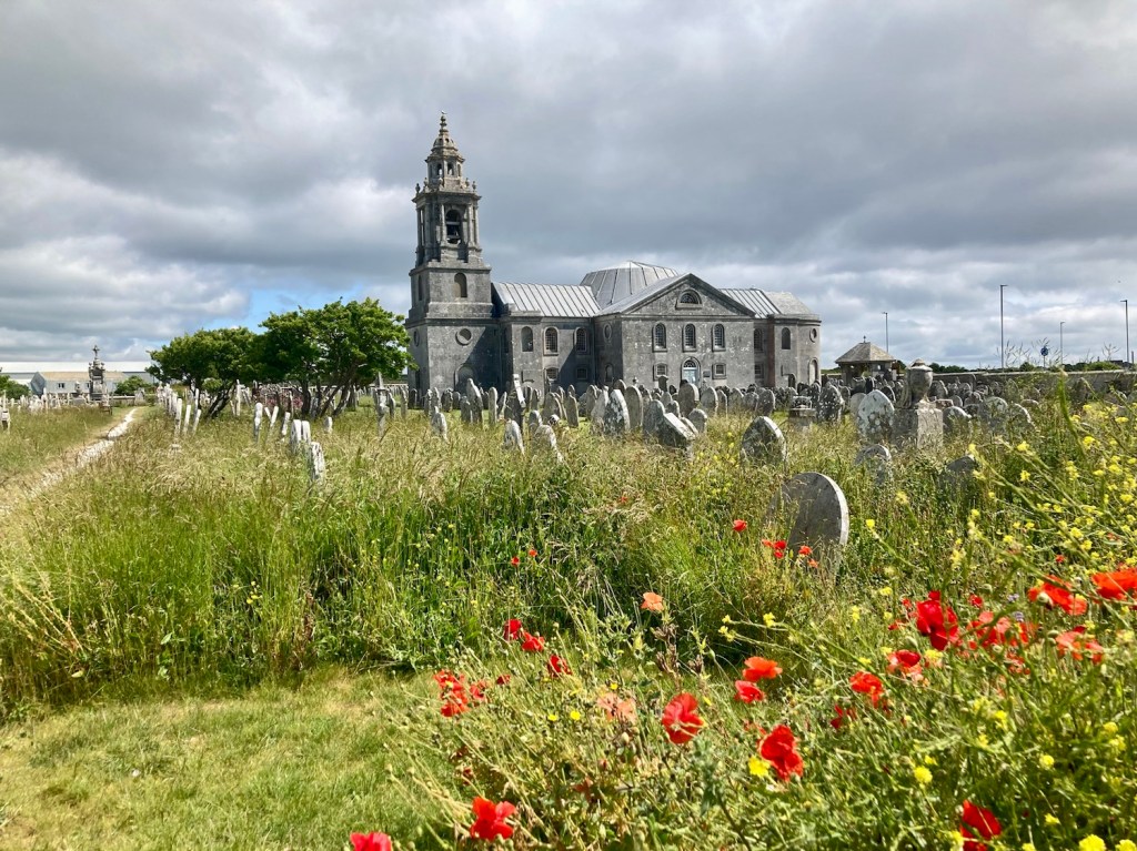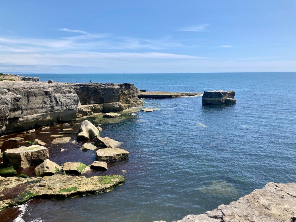 Südlich von Weymouth liegt die Halbinsel Portland. Zum South West Coast Path gehört auch die Umrundung davon. So machten wir uns mit dem Bus auf und fuhren rüber. Start war dann beim Victoria Square, heute mit leichtem Gepäck. 😊 Wir liefen an der Westküste bis zum Leuchtturm am südlichsten Punkt und von da dann retour bis Southwell. Mit dem harten Gestein von Portland wurden einige berühmte Bauten realisiert und so gibt es leider überall ausgediente Steinbrüche.
