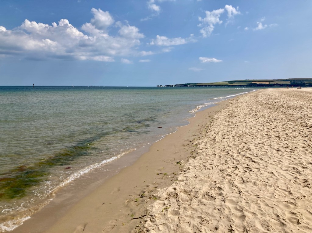 Die nächste Etappe von Lulworth Cove nach Worth Matravers ist wegen militärischem Panzerübungsgelände wochentags leider gesperrt. Es gäbe die Möglichkeit das Gebiet auf Strassen zu umgehen, das ist aber nicht sehr attraktiv. Deshalb entschieden wir uns per Bus nach Swanage zu fahren und diesen Teil komplett auszulassen. Die letzte Etappe war mit ca. 17 km nicht besonders lang und auch eher flach. Allerdings ging’s am Schluss länger dem Sandstrand entlang, was ziemlich mühsam war. Da waren wir froh schlussendlich die Fähre nach Pool/Bournemouth zu besteigen. 😊