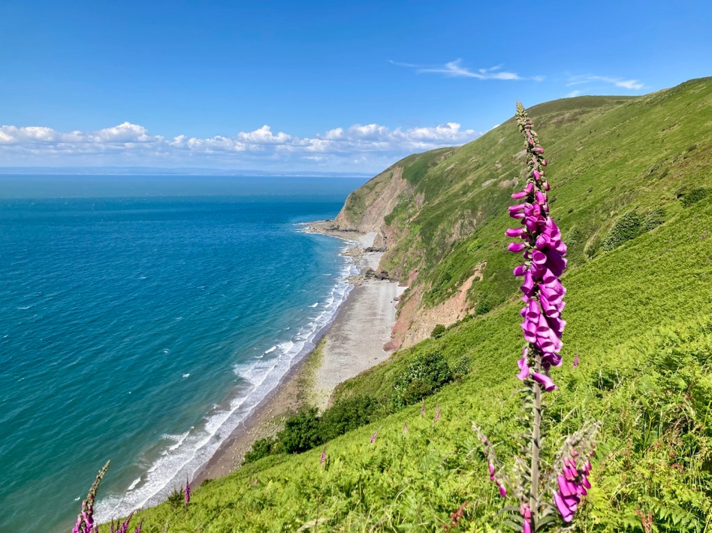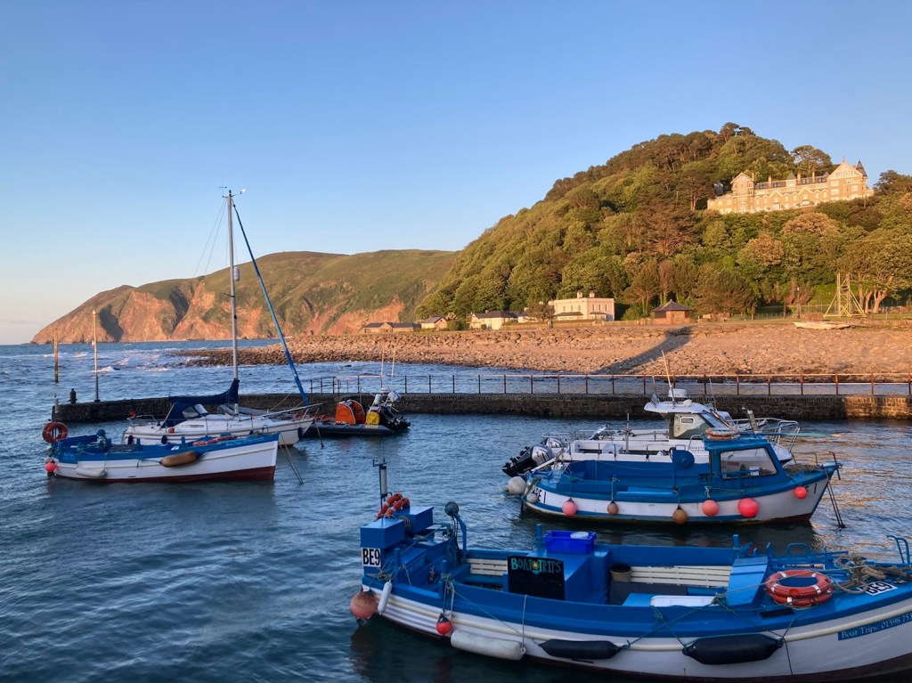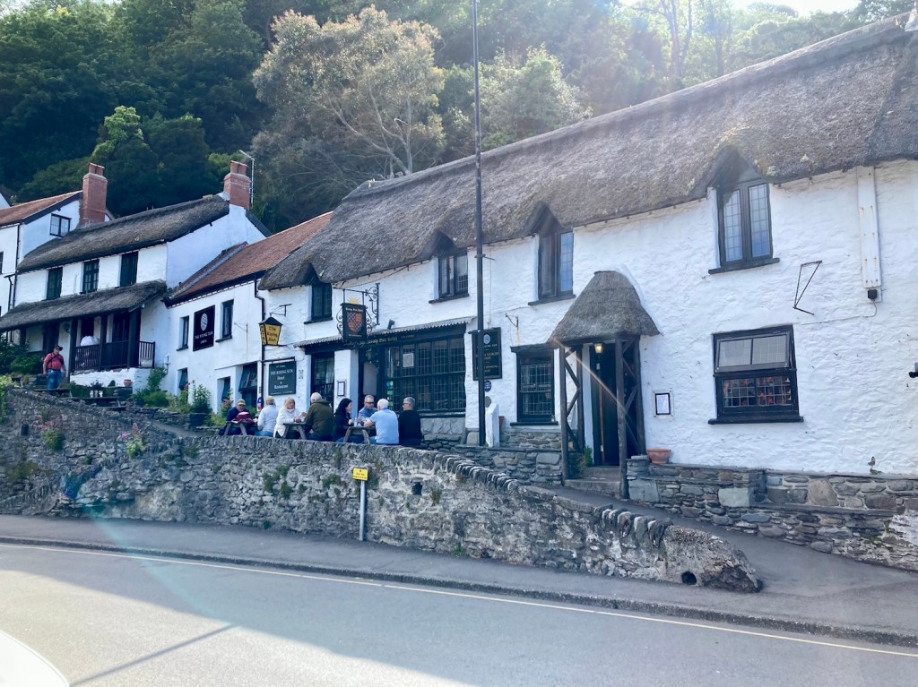 Mit Sonnenschein fängt der Tag schon mal gut an. Für die eine Meile von Porlock bis Porlock Weir nehmen wir den kürzesten Weg über die Strasse. Danach geht’s im Wald die Küste hoch. In dicht bewaldeten Gebieten mit blühenden Büschen werden wir heute mehrheitlich wandern. Als wir dann auf offenes Weideland treffen geht eine ziemlich scharfe Meeres Brise. Hoch über den Klippen fast etwas beängstigend. Nach rund 7 Std. Marsch kommen wir ziemlich erschöpft in unserer Unterkunft “The Rising Sun” an. Eine tolle Unterkunft aus dem 14. Jahrhundert. Bei den steilen & unebenen Fluren kommt man sich schon bei der Ankunft betrunken vor. 😉